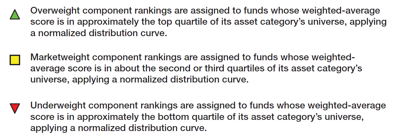 Morningstar also offers forward-looking “Analyst Ratings” for a number of ETFs. A rating of Gold, Silver, Bronze, Neutral, or Negative is assigned to an ETF with the idea being to express Morningstar analysts’ assessment of how well it will perform versus its category peers moving forward. ETFs are rated based on five pillars – People, Process, Performance, Parent, and Price – taking into account factors such as index construction methodology, all-in costs, performance and tracking error, the portfolio management team, and the ETF provider.