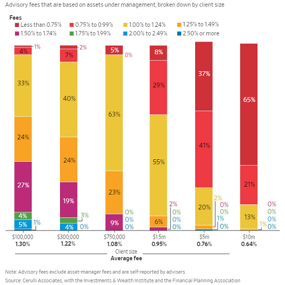 According to a recent Wall Street Journal article, the majority of investors with $1.5 million or less pay fee-based advisors between 1% and 1.5% of their assets under management (AUM) annually.