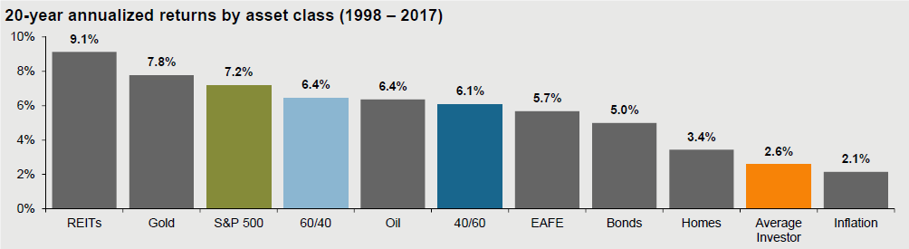 The single biggest value-add advisors can bring to the table is behavioral coaching. Poor investment behaviors – bailing on an investment plan at exactly the wrong time, going all-in on that hot tech stock at the top, reacting to talking heads on CNBC – result in the average investor underperforming over time.
