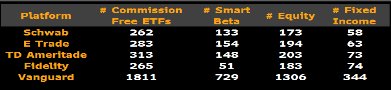 –Lastly, while way down the ETF due diligence checklist, use commission-free ETFs where possible. Because ETFs trade just like Apple or Netflix stock, your broker may charge a $5-10 transaction fee when you buy or sell shares. However, many brokerages are offering increasingly larger commission-free ETF platforms. Somewhat ironically, Vanguard offers investors the ability to trade nearly every ETF without incurring a commission.