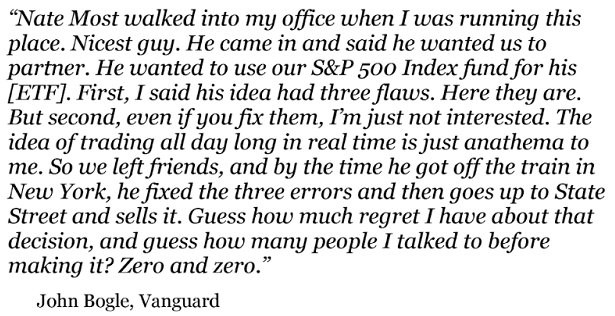 After ETFs began gaining traction in the mid-to-late 1990s, Jack stuck to his guns. From the Wall Street Journal: