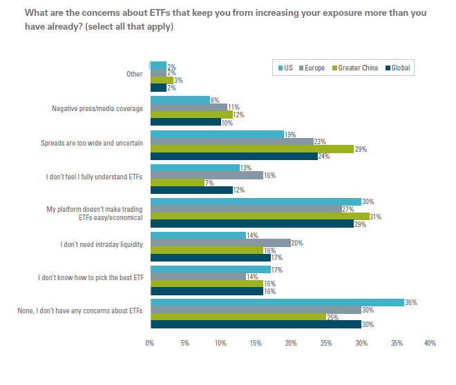 In order for investors to achieve the best outcomes, ETF education is critical and something every one of us in the industry needs to take more seriously. That starts with improving ETF knowledge within the industry. In a recent survey of PROFESSIONAL U.S. investors, 13% said they don’t fully understand ETFs and 17% don’t know how to pick ETFs! Who are professional investors according to this survey? Institutional investors, financial advisers, and fund managers.