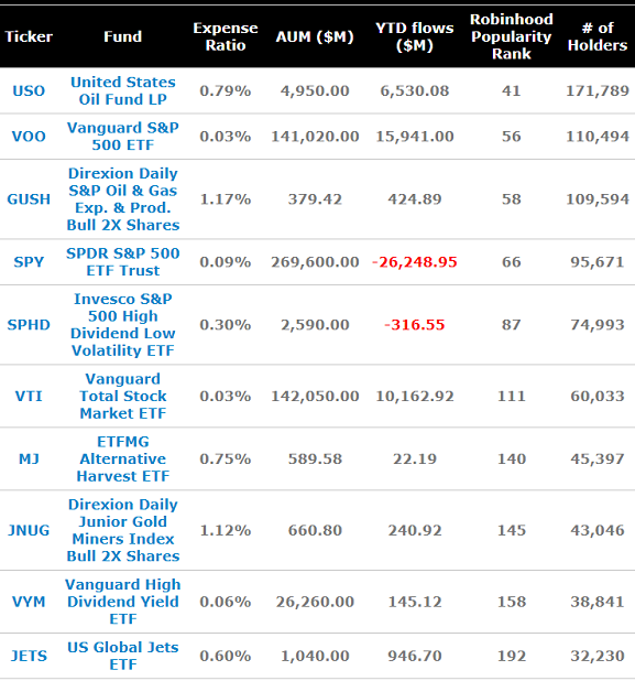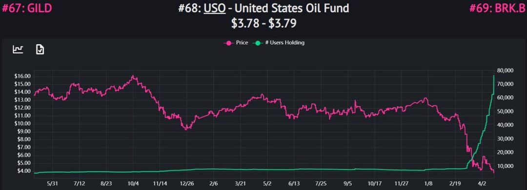 Naturally, some investors attempted to play an oil rebound. As USO dropped 80%+, Robinhood traders (more on them later) piled in.