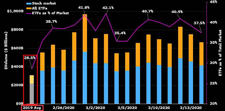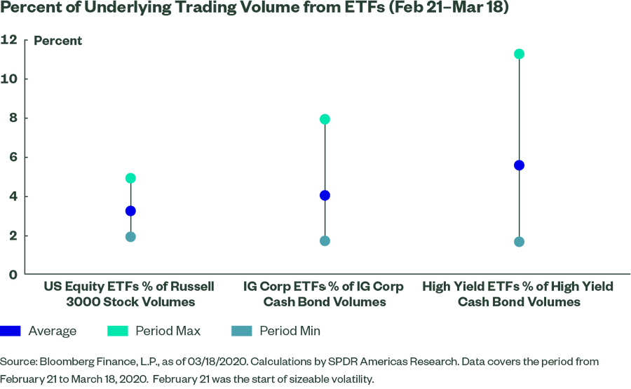 Primary market activity represented a small fraction of overall stock and bond trading during the Covid crash, an indication that ETFs weren’t exacerbating the market declines.