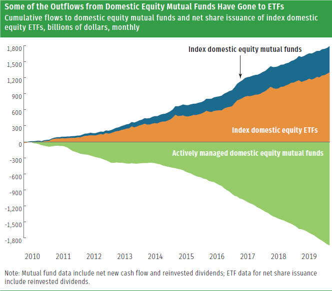 Following the 2008 global financial crisis, ETF inflows accelerated while active mutual funds hemorrhaged cash. A similar story played out on a smaller scale following the 20% stock market decline in the fourth quarter of 2018. Will 2020 follow suit?