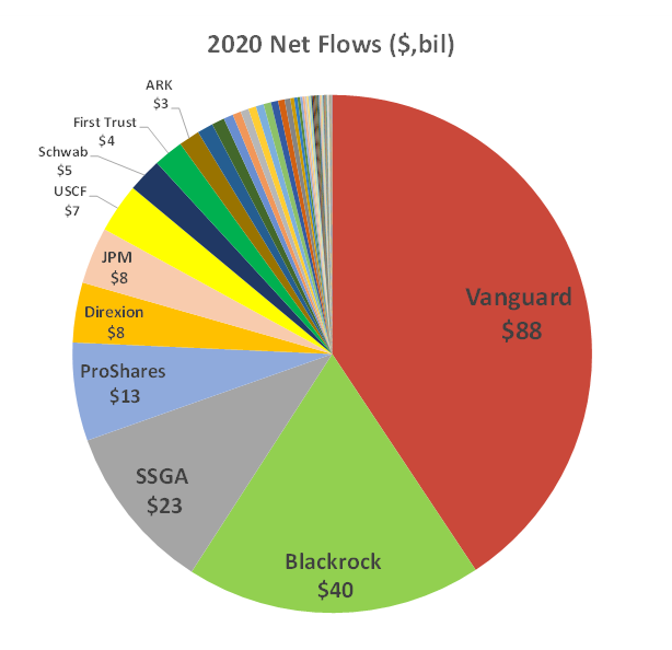 While ETF innovation is alive and well – particularly among the smaller ETF issuers – the industry is dominated by the “Big Three”.