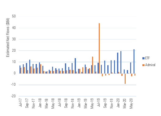 Here’s the visual of investors switching from Vanguard Admiral Share mutual funds to Vanguard ETFs…