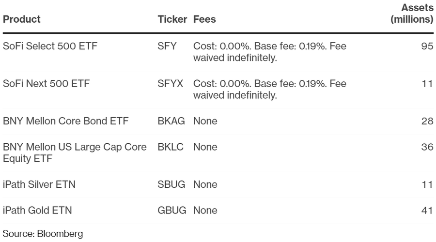 Current Zero Fee Exchange Traded Products