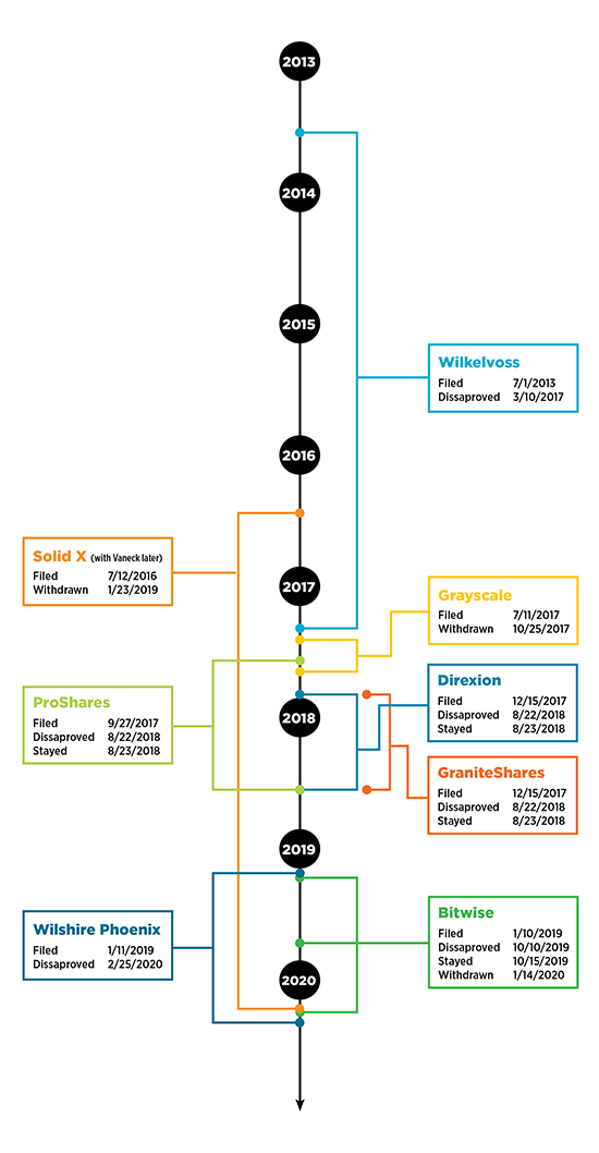 A sampling of ETFs launched in 2020: leveraged business development company ETN, global carbon futures ETF, commodity curve carry strategy ETF, CLO Bond ETF, US Cannabis ETF, Kuwait ETF, and a SPAC ETF. Not launched? A bitcoin ETF. Bitcoin is up over 250% in 2020. Unfortunately, investors still can’t own it through an ETF. 7+ years after the Winklevoss Twins (yes, the guys involved with early days of Facebook) attempted to launch the first bitcoin ETF… well, we’re still waiting. Maybe next year? A timeline of bitcoin ETF filings and disapprovals…