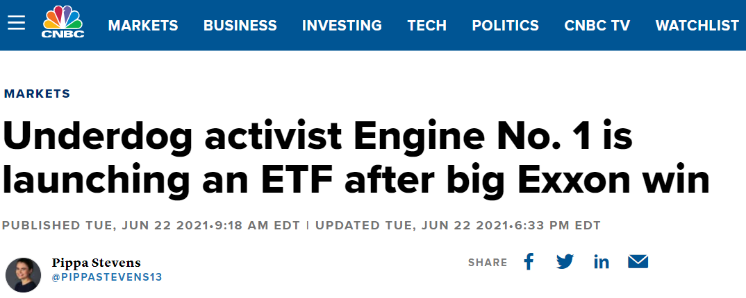 With the proliferation of ESG ETFs charging higher fees to look awfully similar to broad benchmarks, investment firm Engine No. 1 is taking a different approach. Following their successful activist campaign to claim three Exxon board seats, the firm launched the Engine No. 1 Transform 500 ETF (VOTE), which holds a portfolio of the 500 largest U.S. stocks and charges a microscopic 5 basis point fee. The difference? Instead of arbitrarily including or excluding companies from their fund, Engine No. 1 seeks to leverage shareholder voting power to influence board compositions and hold companies accountable for their approach to environmental, social and governance factors. The ETF has already taken-in $300 million this year and is widely considered one of 2021’s best new ETFs.