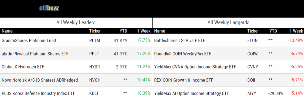 Source: ETF Action; flows and performance data as of 6/12/25; performance data excludes leveraged and inverse products
