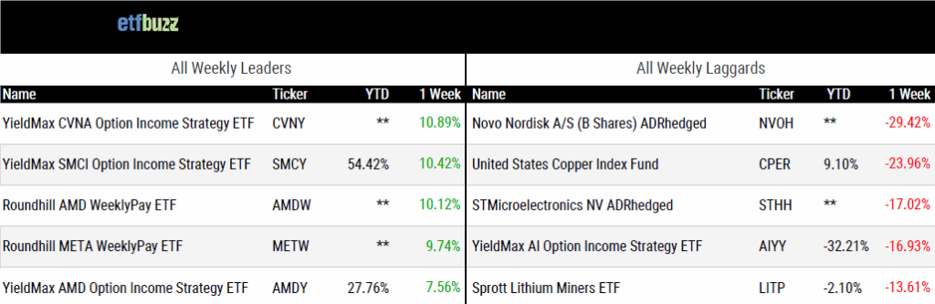 Source: ETF Action; flows and performance data as of 7/31/25; performance data excludes leveraged and inverse products