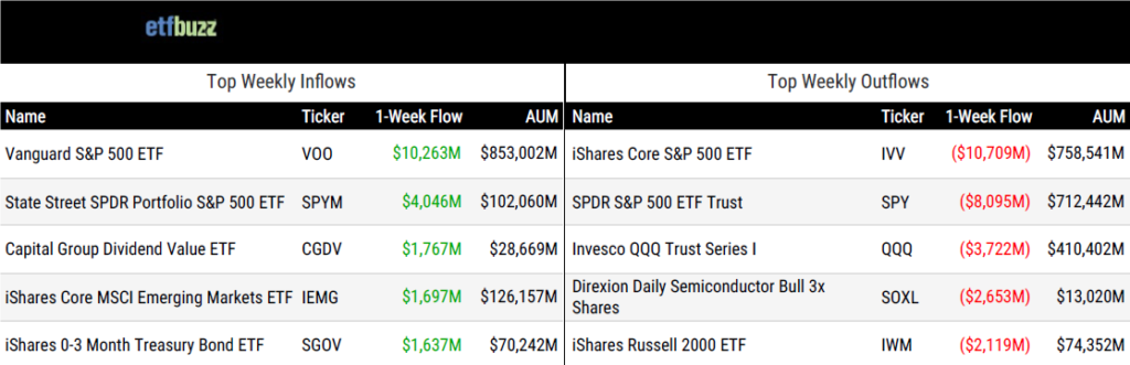 Source: ETF Action; flows and performance data as of 1/8/26; performance data excludes leveraged and inverse products